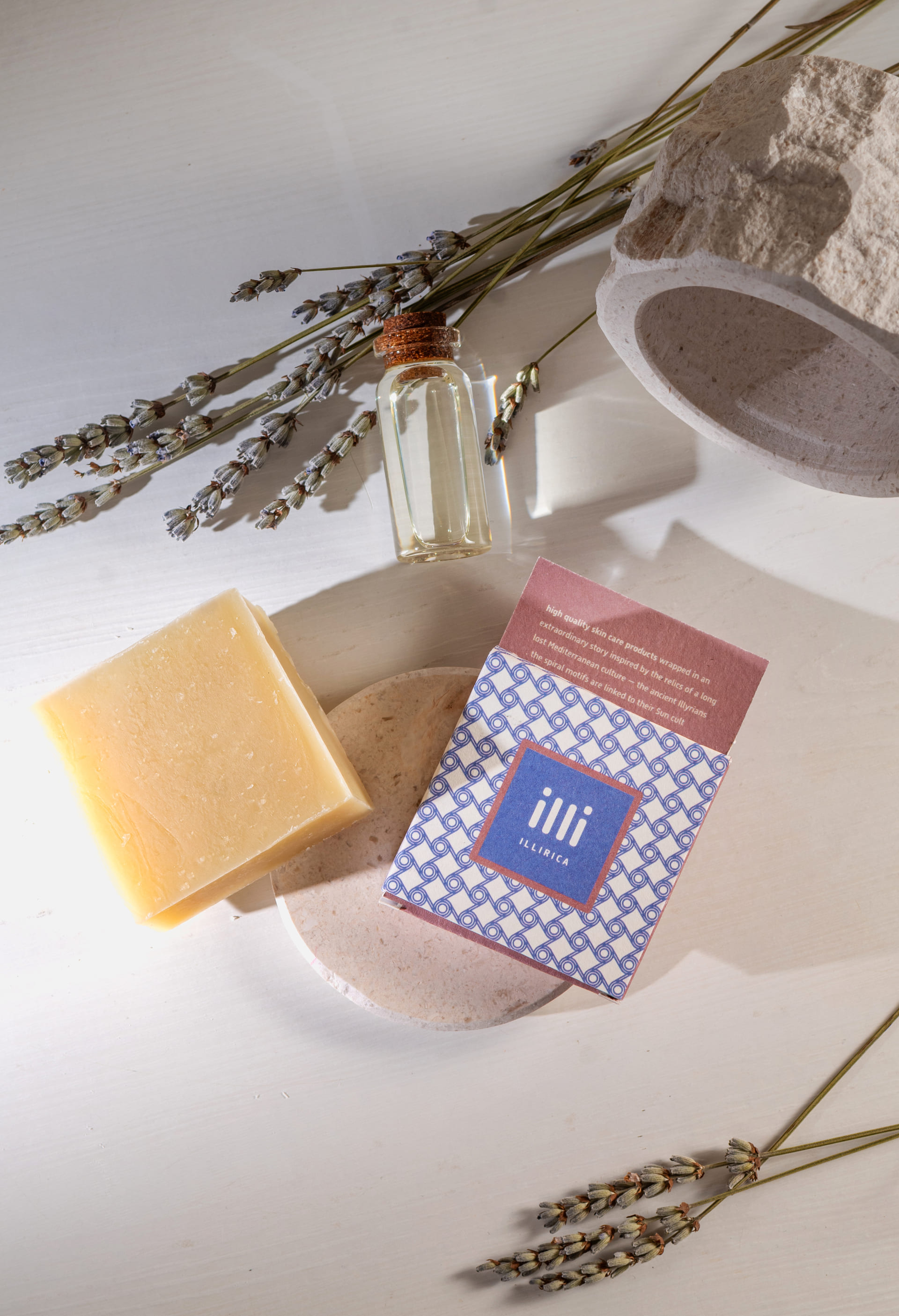 Pakiranje svakog proizvoda jedinstveno je i nadahnuto unikatnim arheološkim fragmentom. Riječ je o tragovima davno izgubljene mediteranske kulture – drevnih Ilira. Motivi kruga i spirala često se povezuju s njihovim kultom Sunca.